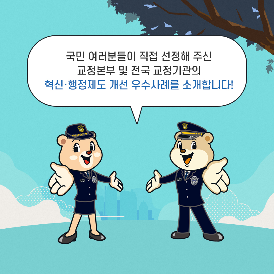 국민 여러분들이 직접 선정해 주신 교정본부 및 전국 교정기간의 혁신·행정제도 개선 우수사례를 소개합니다!