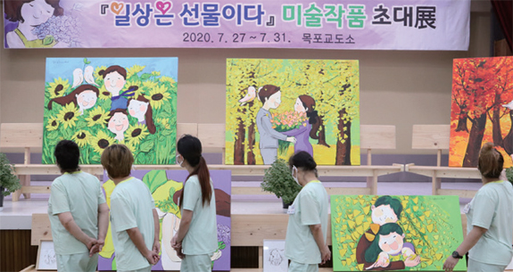 목포교도소는 8월 1일부터 1주일간 한은혜 작가 초청 미술작품 전시회를 개최했다. ‘일상은 선물이다’라는 주제로 100여 점의 미술작품을 사회복귀과 강당에서 전시하여 수용자들이 자유롭게 감상할 수 있도록 했다. 김춘오 소장은 “수용자들이 문화적으로 소외되지 않도록 다양한 문화예술 프로그램을 지속적으로 펼치겠다”라고 밝혔다.