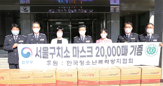 서울구치소는 10월 20일 한국청소년폭력방지협회로부터 코로나19 예방 및 수용자 교정교화 용도로 마스크 2만 장과 성경책 100권을 기증받고 나눔 실천에 모범을 보인 이태순 협회 직원에게 표창장을 수여했다. 신용해 소장은 “수용자가 나눔과 사랑의 소중함을 깨닫도록 후원해줘 큰 도움이 된다”라고 감사의 뜻을 전했다.